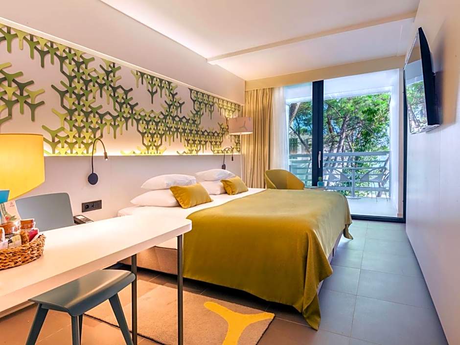This double room features air conditioning, satellite TV and view. This room offers a terrace, a direct entrance to the swimming pool and it's located on the sea side.